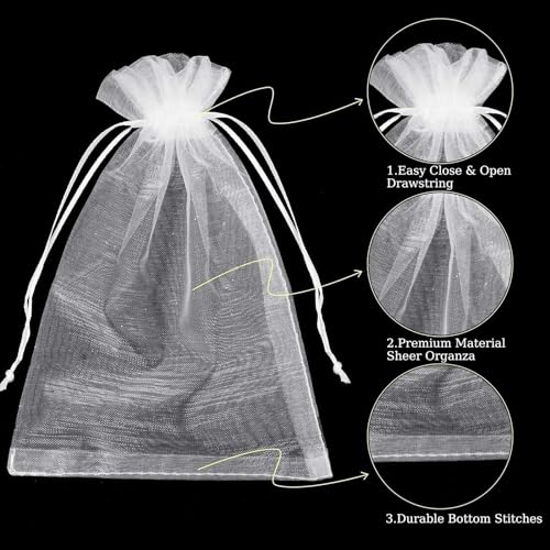 • 【Easy to Use】- These white organza gift bags feature a convenient drawstring design. The drawstrings make it easy to close and open the bags, allowing for quick and hassle-free wrapping. Say goodbye to complicated gift-wrapping processes, as these drawstring gift bags make it a breeze.