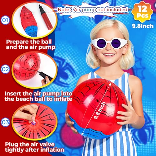 - Sufficient Quantity and Perfect Size: This beach ball set includes 12pcs inflatable spider web theme beach balls, each with a diameter of 9.84 inches (25 cm) and a half circumference of 15.5 inches (39.25 cm) when inflated. The pool ball size is ideal for everyone, making them perfect for fans of blue and red spiders.
