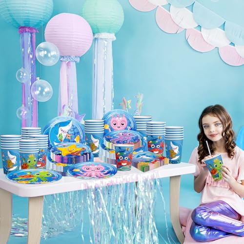 - 【Save Time】These ocean themed party sets are the perfect addition to your birthday party decorations. The plates and napkins are disposable, saving you cleaning time after the party. After the party, you can spend more time with your family or friends and less time cleaning up.