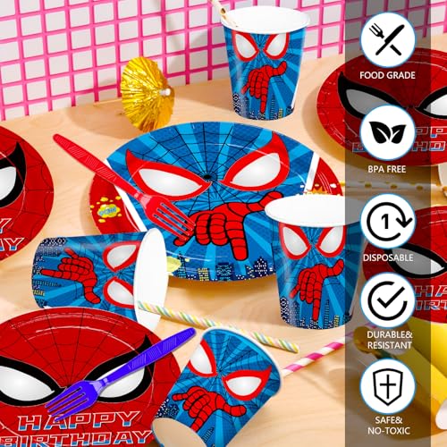 - 120pcs Birthday Party Supplies Kids Paper Plates Napkins Cup Red Blue Forks Boys Birthday Party Decorations Disposable Tableware Set Serve 24 Guests
