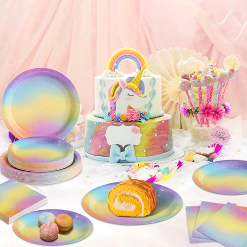 - Sturdy : Our rainbow paper plates and napkins are made of food-grade paper which is not easily folded, torn or broken. Suitable for serving desserts, party food and beverages. Please be reminded not to microwave the plates.