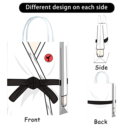 - Karate Goodie Bags content:you will get 16 pieces of Karate Uniform Gift bags with handles,each Karate Snacks bag is 8.3 x 5.9 x 3.1 inches/21 x 15 x 8 cm,a suitable size to store Karate theme toys, snacks, gifts, small accessories and more