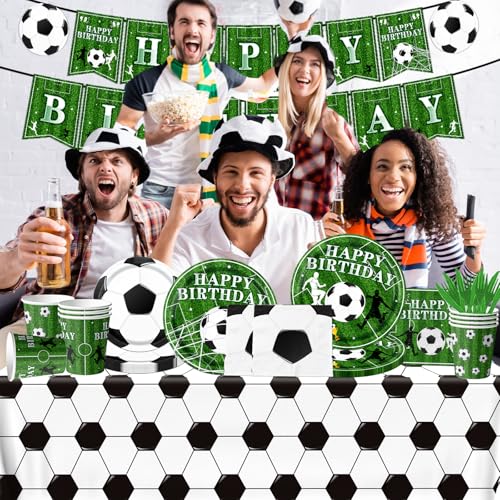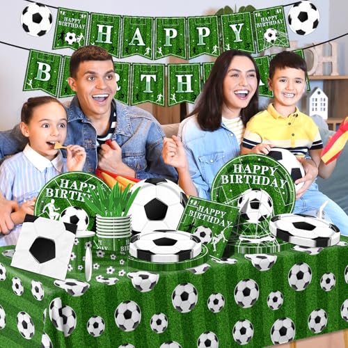 171Pcs Soccer Birthday Party Decorations,Soccer Party Tableware Set Serves 24, ,Includes Plates,Tablecloth,Napkins,Cups,Banner for Soccer Sports Birthday Theme Party Supplies