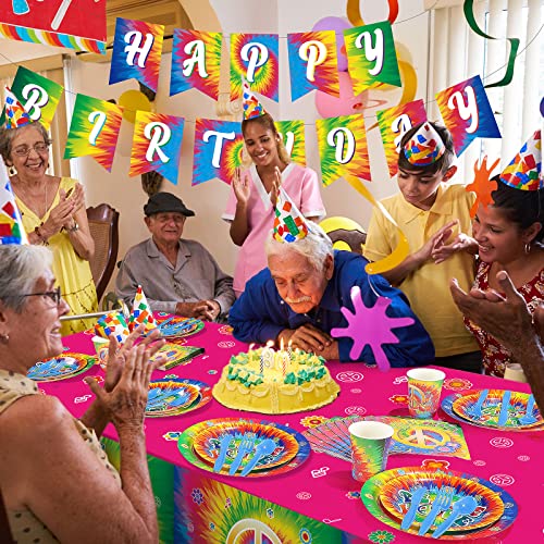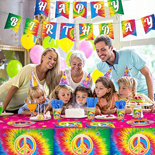 - Serves for 24 Guests: this tie dye party decorations set includes 24 x dinner plates 9 inches, 24 x dessert plates 7 inches, 24 x tie dye napkins, 24 x knives, 24 x forks, 24 x spoons, 24 x cups 9 oz, 2 x hippie tablecloths, 2 x 60s happy birthday banners, these tie dye party tableware kit will serve 24 guests well on 60s theme birthday party
