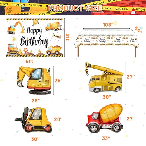 - [High Quality Material] All accessories of this construction party decorations are made of high quality material, the balloons are not easy to tear. The tablecloth size is large enough to serve 16 people. The background is very durable. It can be used for parties or to decorate the bedroom