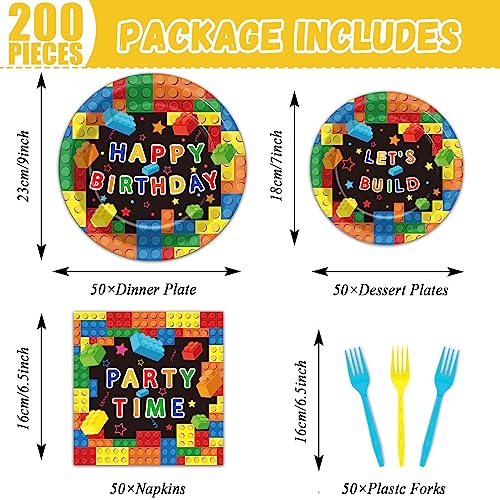 - 【Energizing Building Block Party Design】In addition to forks,this building blocks birthday party supplies paper plates napkins is patterned with colorful blocks.Decorating your building block party with these party sets will bring a dreamlike building block atmosphere to your party.