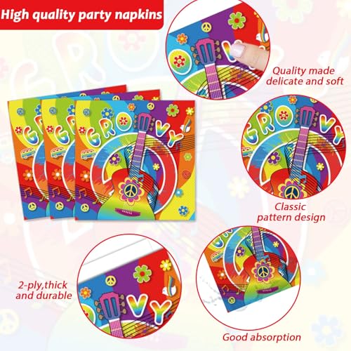- Premium Material: All of our groovy party decorations are made of quality hard cord paper, heat-resistant and durable.The hippie party cake plates and napkins are made of high-quality wood pulp and feel comfortable on the skin.