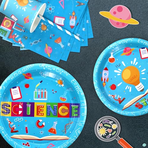 229 Pcs Science Party Supplies Mad Scientist Birthday Party Decoration Science Party Paper Dinnerware Laboratory Theme Favors for kid Science Lab Birthday Party Decoration Baby Shower for 20 Guests