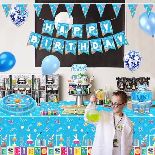 • Premium Quality: The colorful “HAPPY BIRTHDAY” party banner is made of paper, sturdy, and reusable cardstock. Latex and foil balloons are made of natural, lightweight material, non-toxic, and have no odd smell. The Science Lab theme party tableware set is made of thick paper, 100% food-grade, non-toxic, no odd smell, sturdy, and environmentally friendly. The science theme table cover is made of quality thick PE, lightweight, portable, and waterproof.