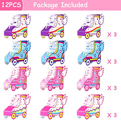 - What You Will Get: the package comes with 24 pieces of roller skate party favors boxes in 4 styles, the skate size is 6 x 5.7 x 2.7 inches, very suitable for hold gifts and snacks, you also could take it as table centerpiece decoration. This cool roller skate box can meet your various needs at parties!