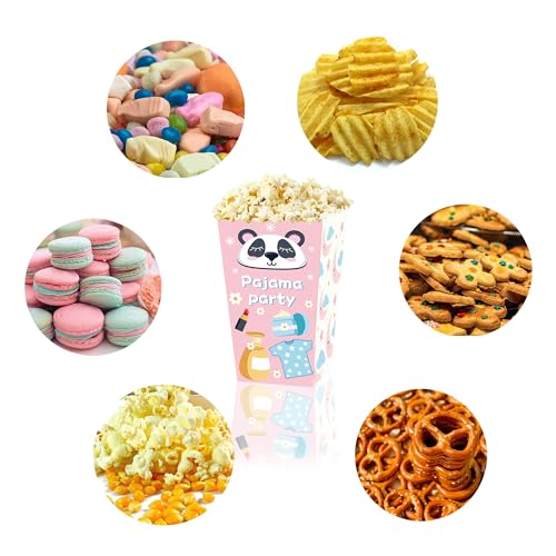 - Product Design:The popcorn boxes feature charming pink designs with illustrations of sleepwear, accessories like eye masks and slippers.The playful and cohesive theme adds a fun, relaxed vibe, making each box a delightful addition to any themed gathering or celebration.