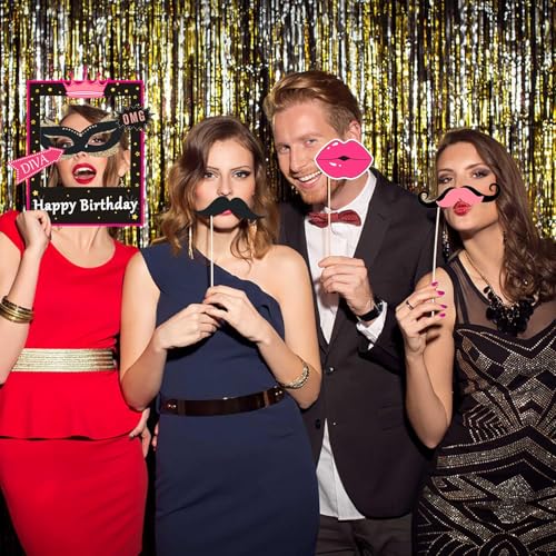 - đăAwesome Hot Pink Girl Birthday Party Suppliesă: You will get 31pcs photo booth props toppers in pink, rose glitter, black and hot pink, high-resolution digital printing with eye-catching details and true-to-life colors. No reflections or fading. Lightweight and easy to carry.