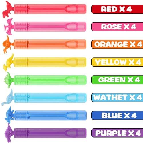 - Value with gift box – Including 32 PCS with 8 Style mini dinosaurs bubbles with specially design, Fun toy for summer and bath time activities. Children can easily blow out colored bubbles in the sun.