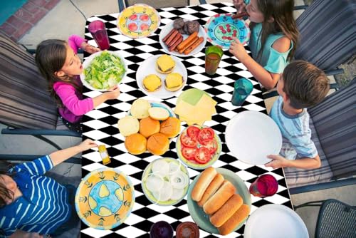 - High-Quality Material: This black checkered tablecloth is made of high-quality PE plastic material, which is light, waterproof, portable and safe.