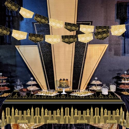 - Wide range of applications: this black and gold 1920s Birthday Speakeasy Retro Flapper tablecloth can well fit the overall decoration of your 1920s Birthday Speakeasy retro flapper wedding Party decorations,Roaring 20’s Party Decor,Music Party,1920’s extravaganza,cocktail party