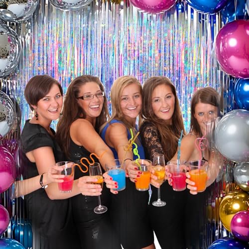 - High Quality Materials: These silver fringe backdrop curtains are made of aluminum foil, safe, environmentally friendly and reusable, that is safe for both you and your kids! The iridescent foil backdrop creates a shimmering effect that adds a touch of glamour and elegance to any event.