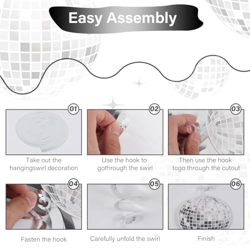 - Quality Material:The hanging disco ball decor are made of safe and reliable plastic foil and paper cutous,beautifully cut and durable,reliable quality, not easy to fade. Just take it home with confidence and enjoy the cute and special disco party. You will be super excited and enjoy the disco party decorations.