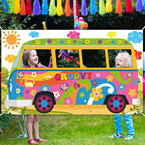 - Hippie bus photo party decorations includes: 1 piece of bohemian hippie decor measuring 167*100 cm/65.75 x 35.4 inches, accompanied by a generous length of white string spanning 20 meters for effortless hanging and groovy photo opportunities. This prop is suitable for both children and adults alike, providing ample space to capture your most far-out moments.
