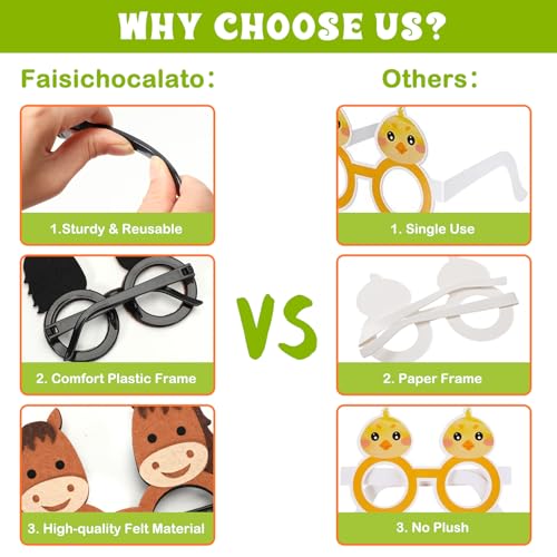 - The farm animal eyeglasses are made of the black plastic frame and soft felt fabric, Lightweight and Comfortable to wear, High-quality safe materials can be worn for a long time. Everyone will love the funny faces on these animal shape eyeglass frame.