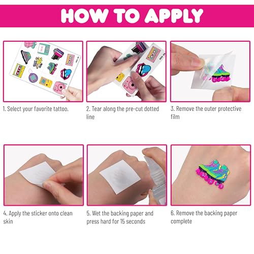 - Cute patterns: 90s 80s Pre-Cut Temporary tattoo stickers, features an assortment, colors are bright, and designs are adorable, which are attractive to children. Our party favors are based on children's happiness both in appearance and inwardness.
