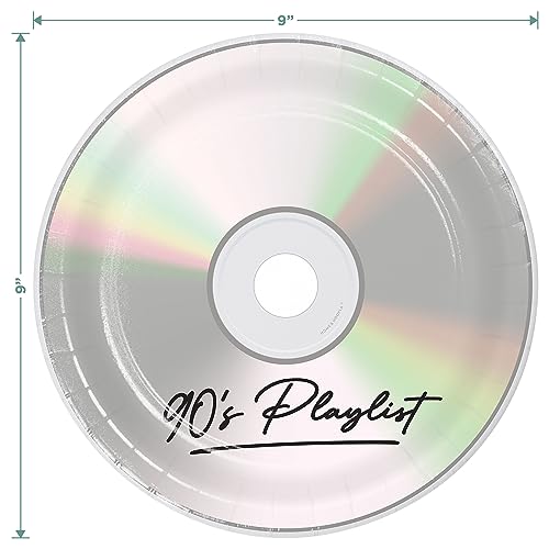 - Featuring "90's Playlist" CD designed plates made to look like your favorite burned compact disc with colorful floppy disk napkins.