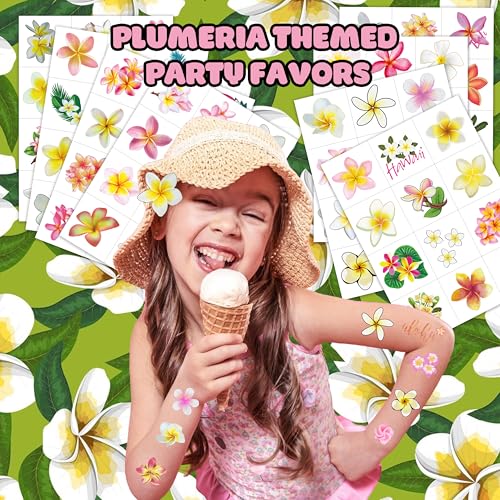- Widely used: Plumeria Flower Cute Tropical Hawaiian Luau Temporary Tattoos pieces are suitable for many occasions such as birthday party supplies, party decorations, party favors, party bags, DIY decorations, pool and the beach or gift. Temporary tattoos are the best party favors and goodie bags fillers ever for any kind of celebration!