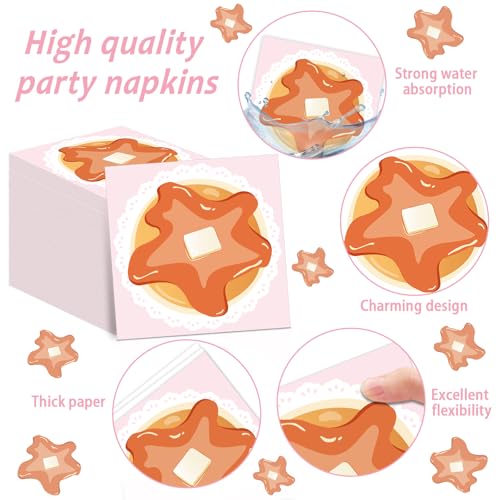 • Adorable design: Each dessert plate and napkin showcases a stack of fluffy pancakes topped with a dollop of butter and surrounded by a delicate lace design, evoking a fun, cozy morning scene. The charming pancake tableware set features soft pastel pinks and inviting imagery that greatly complements the sleepover and breakfast-in-bed vibes of the party.
