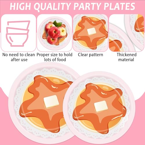 • Packing content: You will get 24pcs 9 inches pancakes and pajamas party dinner paper plates, 24pcs 7-inch pancake party dessert plates, 24pcs 6.5-inch sweet pancake napkins, and 24pcs pink forks, each set can serve 24 guests. The pancakes and pajamas party plates napkins tableware set are ideal for serving 24 guests, providing for your party needs.