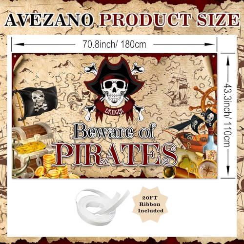 - Ideal party decoration: This eye-catching beware of pirates party background can go well with your party favor like pirate birthday party tablecloth, pirate birthday plates napkins and banners