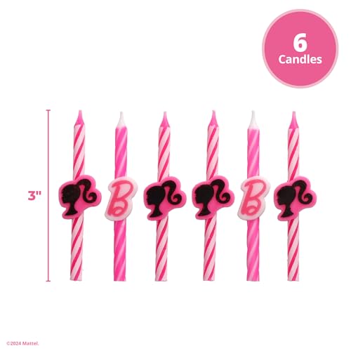 - Barbie Birthday Candles – Featuring the iconic Barbie Silhouette and "B" in eye-catching pink. 6 candles per package.