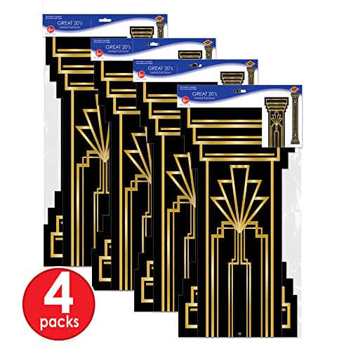 Beistle 4 Piece Roaring 20's Column Pull Down Cut Outs 1920's Theme Awards Night Party Decorations, Black/Gold