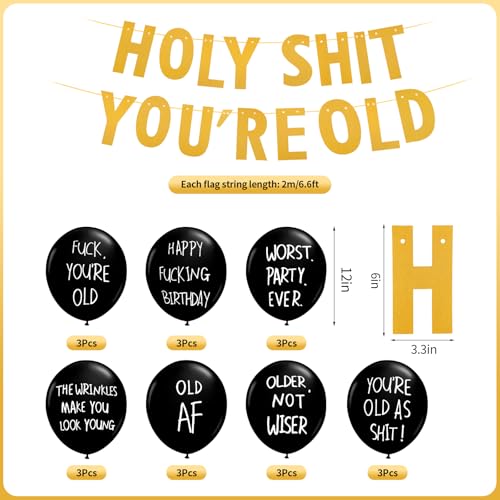 BestoFun Holy Shit You're Old Banner Funny Abusive Old Age Birthday Party Balloons Over The Hill Birthday Decorations Retirement Birthday Decoration Fun Gag Balloon for Old Adults
