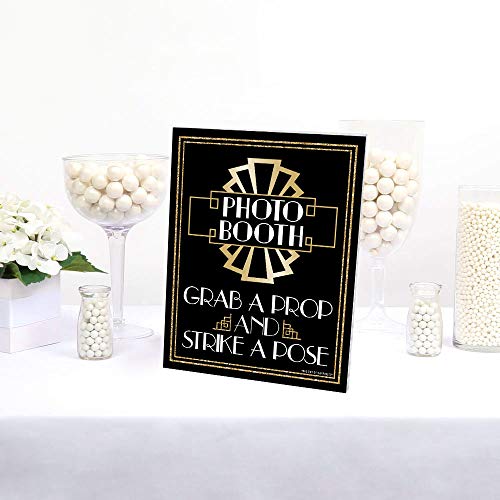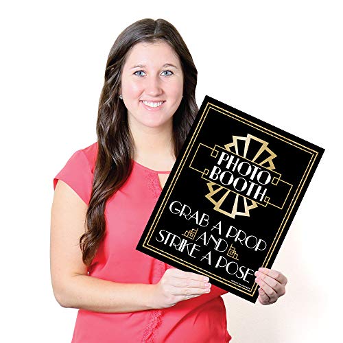 - HIGH-QUALITY PARTY SUPPLIES: Roaring 20’s Photo Booth – Grab a Prop and Strike a Pose Sign is professionally printed on durable, corrugated plastic. The photo booth sign will arrive cut out and ready for indoor or outdoor use. Simply add the included chipboard easel back stand to the back and display next to your selfie station.