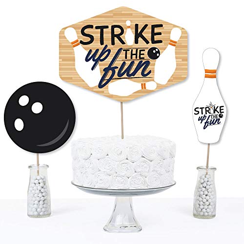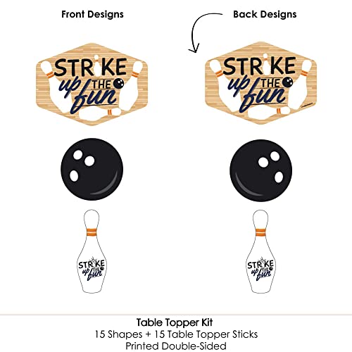 - Strike Up The Fun – Bowling Centerpiece Sticks INCLUDES 15 Strike Up The Fun – Bowling table toppers in three different shapes, 15 table topper sticks and stickers for easy assembly. Bowling party table decorations are perfect for a baby shower or birthday party.