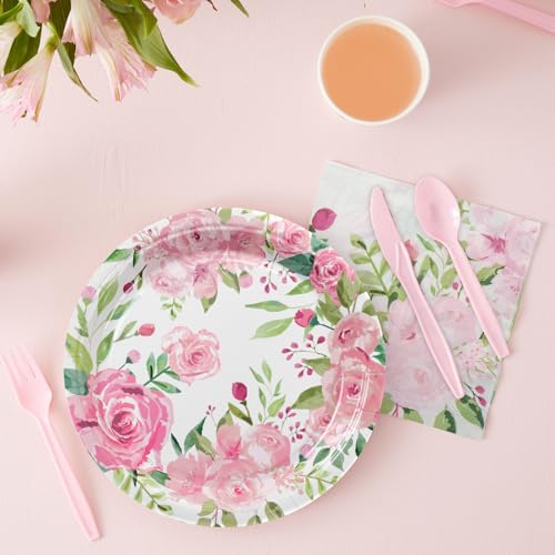 - Complete Service for 24: Accommodate up to 24 guests with this comprehensive collection, featuring floral paper plates, pink floral paper cups, napkins, and cutlery. Ideal for birthdays, bridal showers, or any special occasion, ensuring everyone is served