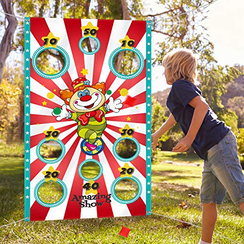 Blulu Carnival Toss Game Banner with 3 Bean Bags Carnival Game for Kids and Adults in Indoor Outdoor Activities Circus Theme Birthday Party Decoration Supply Set