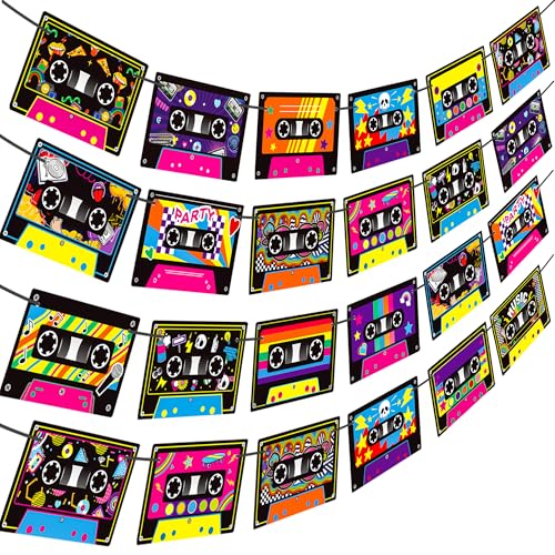 - 70’s 80's and 90's party supplies:Ideal for 1980s party, retro theme party, throwback birthday party, 90's party, Hip Hop party supplies, boombox party and more. Vintage tape banner decorations take you back to the 70's and 80's atmosphere