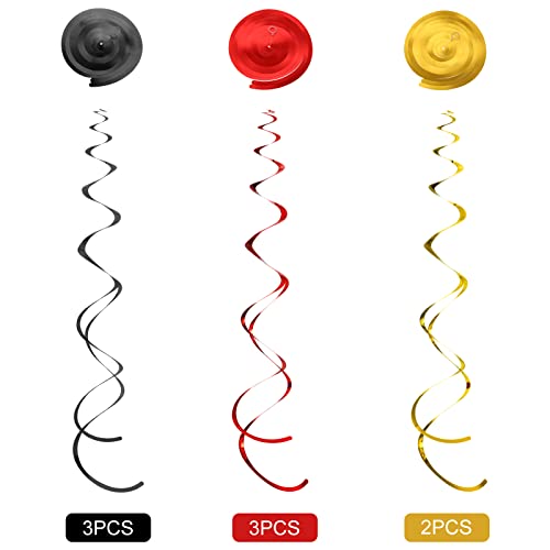 - What You Get: pirate party ceiling streamers set includes 22 pieces pirate paper cutouts in 11 different design patterns, 22 pieces single tailed spirals (gold x 6,red x 8, black x 8), and 8 pieces double tailed spirals (gold x 2, red x 3, black x 3), each vortex can extend to approximately 32 – 40 inches long, bright and exquisite, you can hang it around the house to enhance your pirate party vibe
