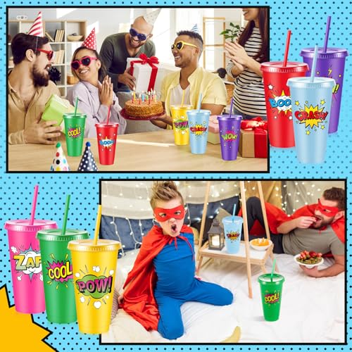 - Rich Package Content: each package includes 12 pieces of hero tumblers with lid and straws, featuring 6 different styles, with 2 of each style, enough for hero themed party, teams, events or as gifts to friends