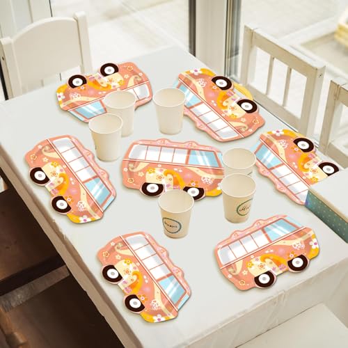 - Packing content: These groovy party decorations include 50pcs retro hippie bus dessert plates. Brighten up your table setting with our groovy hippie peace bus dinner plates that exude an appealing and cheerful atmosphere, ideal for your hippie party or birthday party.