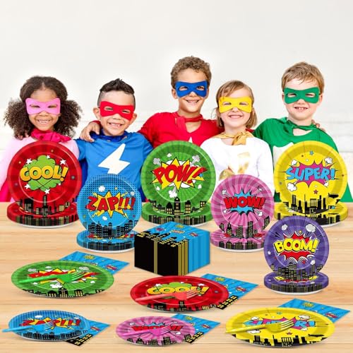 - Premium quality: Our hero themed birthday party tableware set is all made of high-quality paper that is waterproof, oil-proof, and durable, which is suitable for food contact, so you can use it with confidence. This cityscape building party decor for kids is well-printed, avoiding fading embarrassment.
