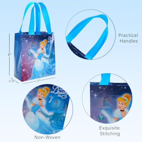Cinderella Party Favor Bags Set – 24 Pack of 8" Cinderella Party Goodie Bags for Kids Bulk Reusable Mini Totes | Disney Birthday Party Supplies