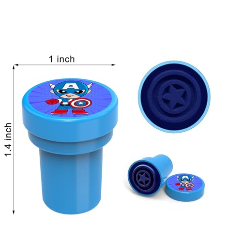 - 【Package Includes】 24Pcs Superhero Themed Stampers with 12 DIFFERENT designs and colors, each stampers measures 1.5 inches tall, 1 inch in diameter.