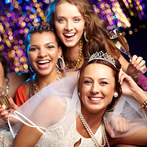 - The perfect bridal shower decorations set: Bride To Be sash + crystal crown silver + wedding veil.