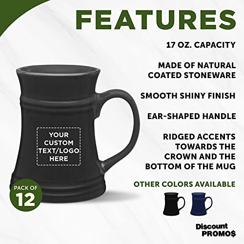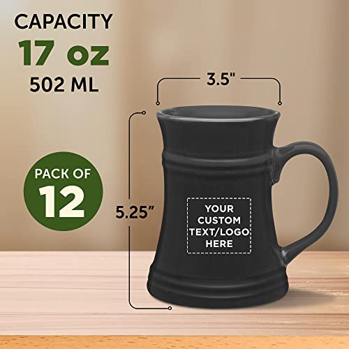 Custom Ceramic Tankard Beer Mugs 17 oz. Set of 12, Personalized Bulk Pack – Barware, Great for Beer Festivals, Birthday Parties, and Other Major Events – Grey