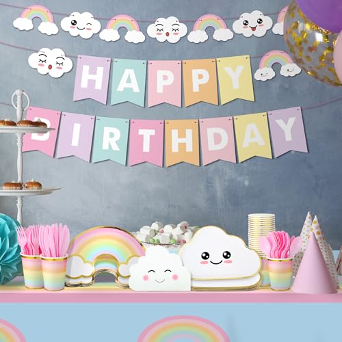 Dandat 175 Pcs Rainbow Party Decorations Happy Birthday Party Supplies Serves 24 Guests Rainbow Design Plates Cups Napkins Tablecloths Banner
