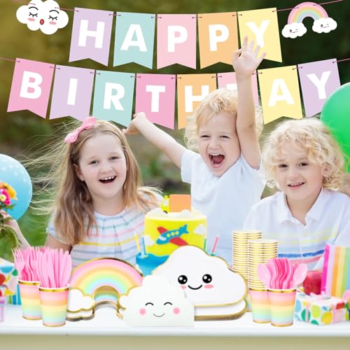 • Rainbow Theme Design: the cute and stylish rainbow theme design features bright colors scheme and rainbow graphic that sets the tone for a colorful, fun filled event; The cohesive design is nice for various birthday celebrations and matches a wide range of ages, personalities and groups