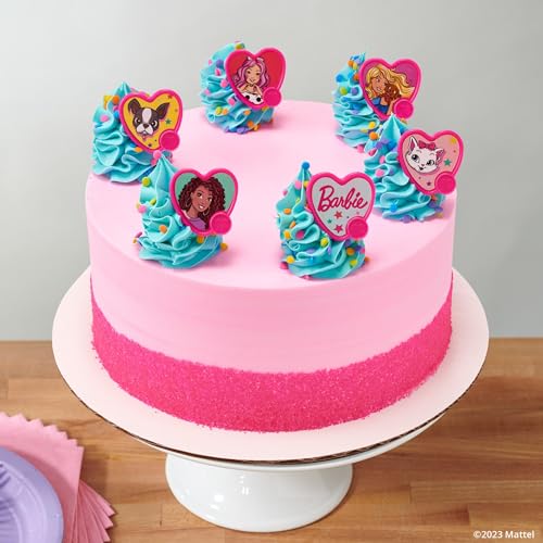 DecoPac Barbie Be The Future Rings, Pink Heart Shaped Cupcake Decorations Featuring Barbie and her Friends For Birthday Party And Celebrations – 24 Pack