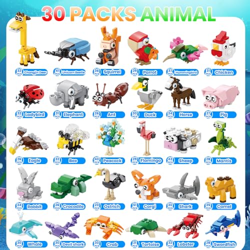 DIYDEC 30 Pack Animals Building Blocks Toys, Mini Party Favors Building Set for Kids Bricks Toys for Boys Girls Holiday Goodie Bags Stocking Stuffers Classroom Prizes Birthday Gifts