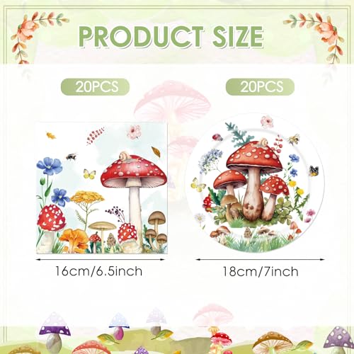 - What You Get: Mushroom party supplies come with 20 pieces mushroom plates, 20 pieces mushroom napkins. There are enough mushroom decorations for you to have a mushroom party filled with wonderful memories.
